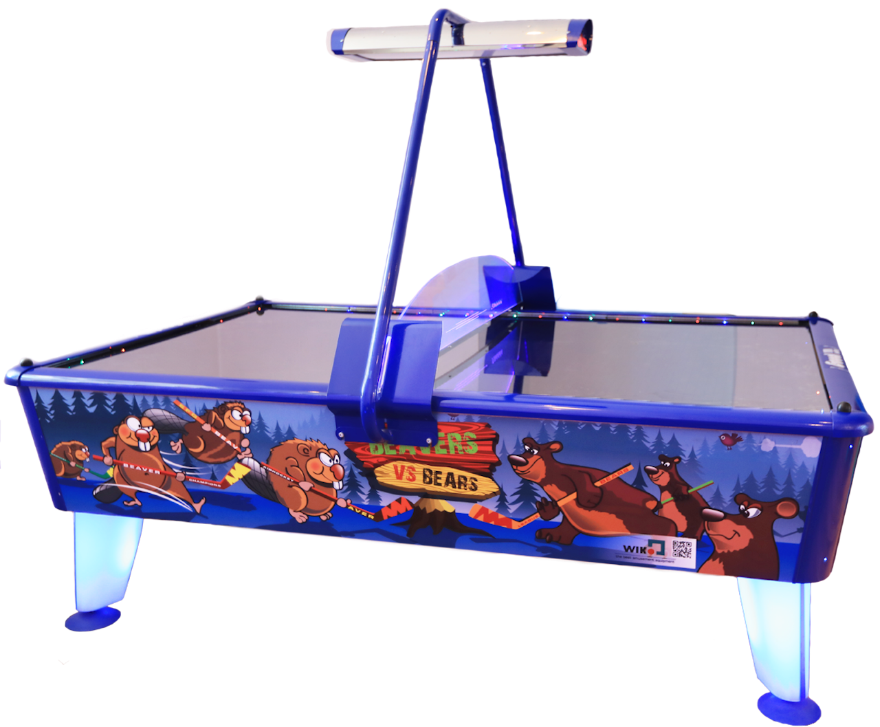 Designed to be played by four players - two teams, Beavers vs Bears is following latest trends in the amusement world. It has all you'd expect from amazing Air Hockey table: lightning LED system, stainless steel play field, two displays & funky music. It is the most popular table and among millions of players. Thanks to our 20 years of experience, we can promise extra durability and solid construction. What's amazing about this particular machine is that it's fully customisable on software level with many different settings. Have it your way!
