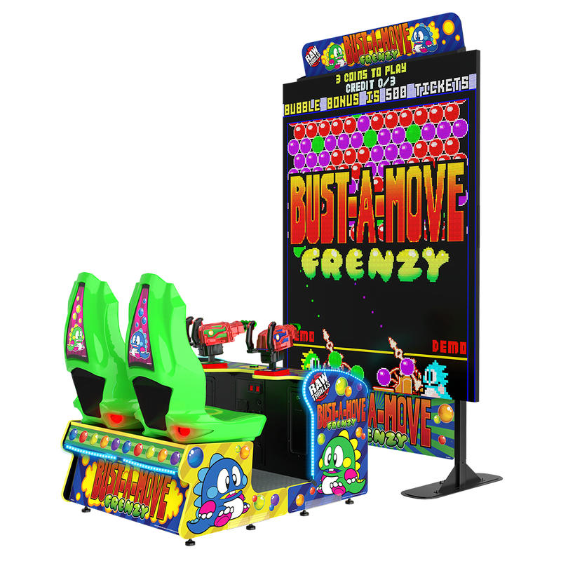 Bust-A-Move® Frenzy™, the much loved, ORIGINAL bubble-popping game is back in the Arcade!. Officially licensed from Taito, Bust-A-Move® Frenzy™ features ALL NEW 2-player co-op FRENZY play! Team up and bubble up to a new HIGH SCORE with amazing powerups and relentless FRENZY play.