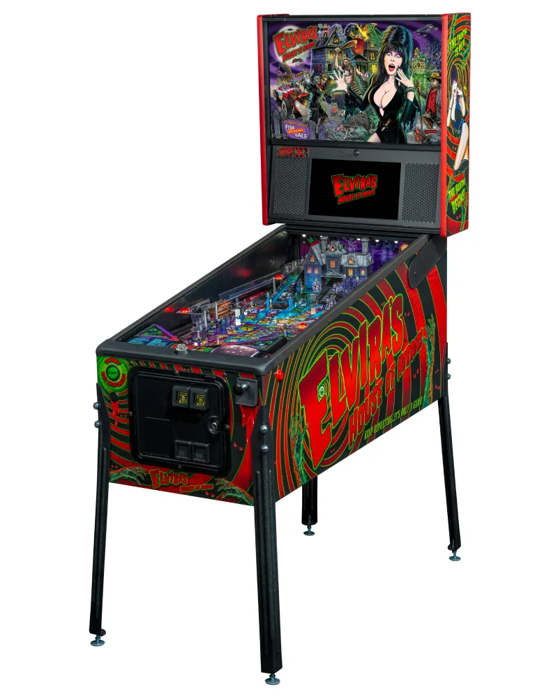 The taunting is over and the haunting begins in the third and campiest installment of the Elvira pinball trilogy! Trying to sell her mansion through “Alternate Realty”, Elvira’s house is haunted by the movie characters from her past. These ghouls, ghosts, monsters, and strange assortment of vintage characters with horrific acting skills seek revenge on Elvira while she and the player confront them, sending them back to the “film” from which they came! Elvira’s House of Horrors immerses players in a fun, campy, B-movie universe filled with all of the humor expected from the Mistress of the Dark including custom speech and, in a pinball first, exclusive filming of Elvira for custom video scenes featured throughout the game!