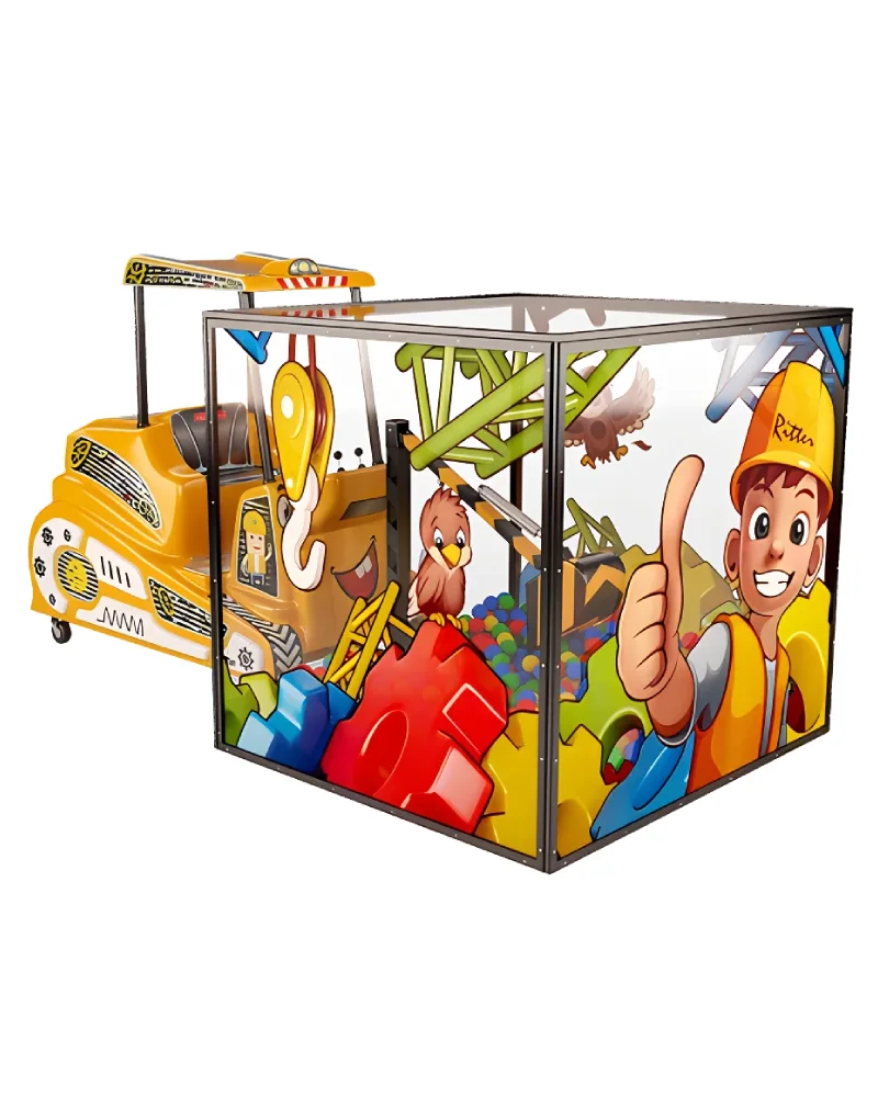 The mini excavator kiddie ride was created for children aged from 3 to 12 years. Its small size and attractive appearance is a great advantage of this amusement machine. Excavator has eye-pleasing graphics and colourful elements. The whole device is only 3.5m2, so it doesn’t need much space. The device is very easy to use, clear and easy to read control panel. Excavator consists of the cabin with a spoon to dig and a well-fenced section filled with the plastic balls. Leisure and entertainment device not only provides a lot of fun, it is also a toy supporting healthy development of children. You can buy the budget version, without stickers, sound effects and electronics, and the deluxe version with full equipment. Both versions provide unforgettable moments of fun, and the choice is yours.