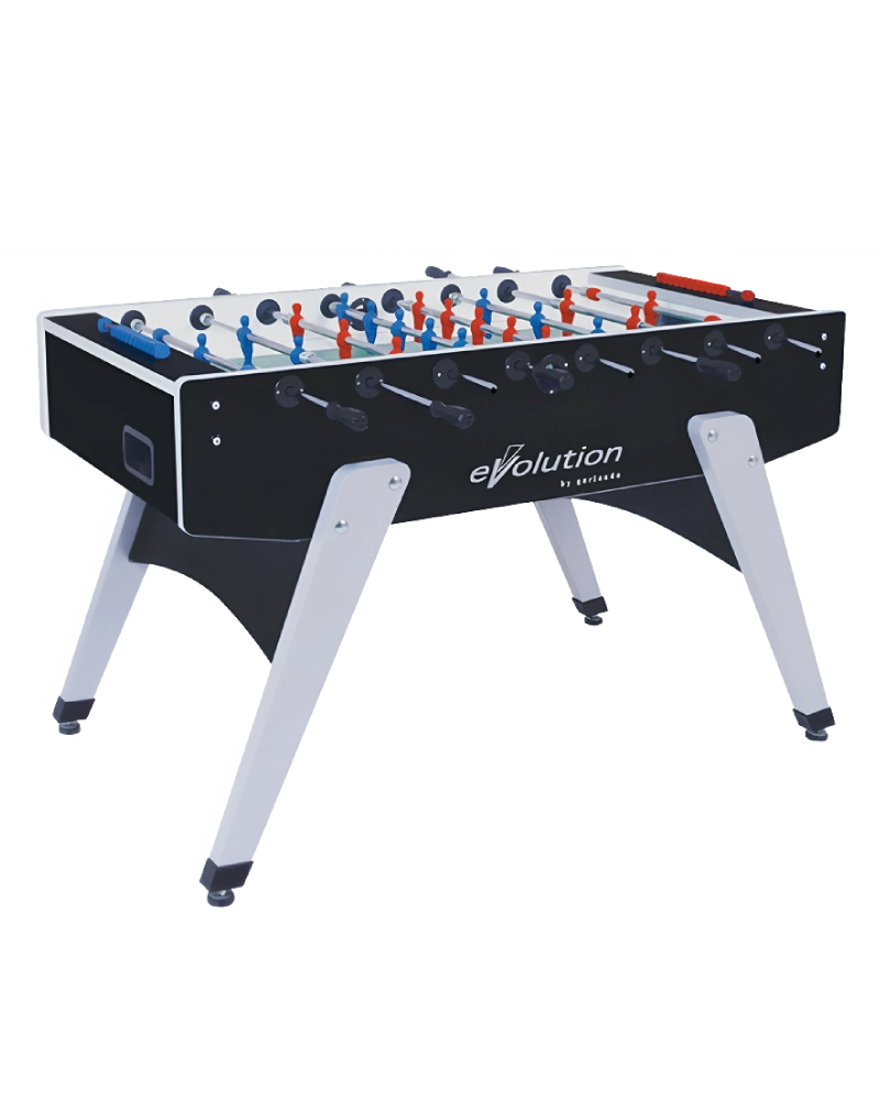 The G-2000 football table belongs to the Evolution line. Great performance and elegant profile, it also includes leg levellers and ergonomic handles as a standard. The telescopic bars can be requested to better safeguard children. G-2000 Evolution complies with the harmonized European rules EN on safety.