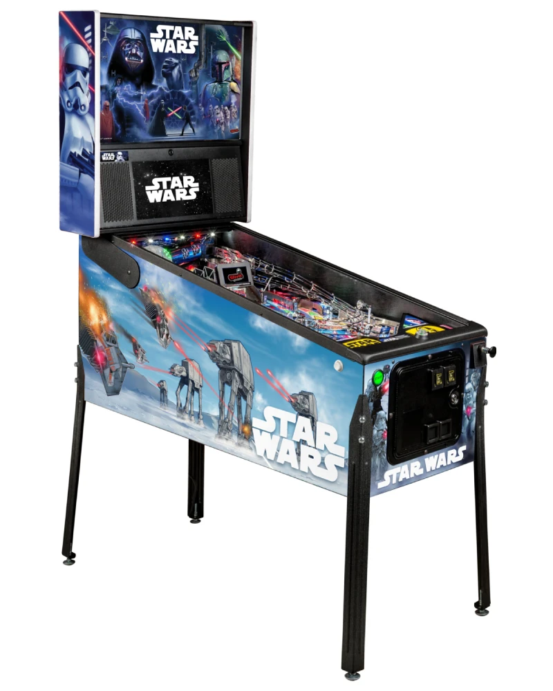 Stern’s Star Wars Pro, machines are packed with features that provide an irresistible game experience. The game includes select speech and footage from the original Star Wars trilogy; color-changing LED-lighted inserts; and a sculpted TIE Fighter.