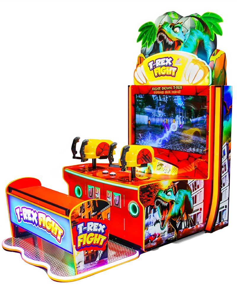 2 player Dinosaur themed sit-down light-gun game with redemption tickets. A smaller, more compact, cabinet than the bigger T-Rex Park water-gun game. This game fits in places where the larger water-gun and ball-shooting games might not squeeze in.