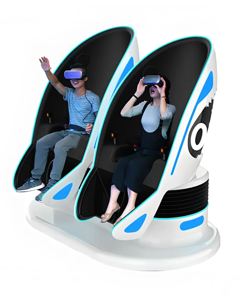VRshark is a shark-platform, specifically two shark-styled seats.Bright, vivid colors, extra lights and a high-gloss finish encourage play.The seats take the form of a bucket, thanks to which you have the impression of being in your own, intimate and safe space. The extensive library of games and movies has been designed in such a way that everyone, every adult and child, can find something for everyone.Rollecoasters, zombies, dinosaurs, robot fights, exploring the underwater world, making movies, a taste of what only VRshark has fun.